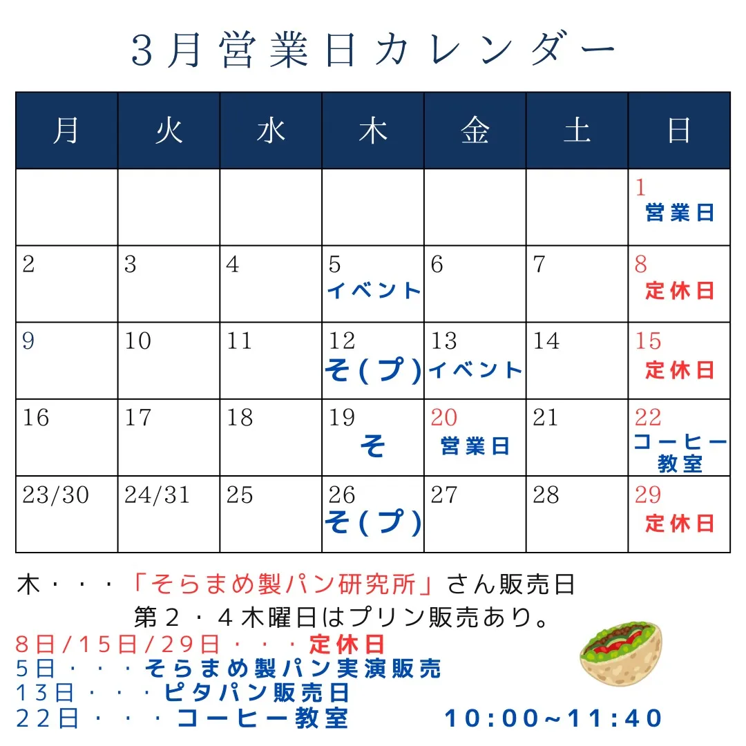 13日・・・ピタパン🥙の販売日です。事前に予約いただけると、お昼休みのわずかな時間に素早くお渡しできます。もちろん仕事帰りに持ち帰ることもできるので、晩御飯代わりにしてもらっても大丈夫🙆